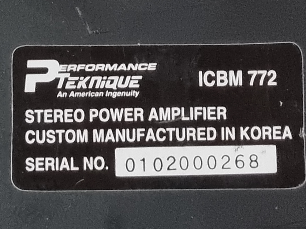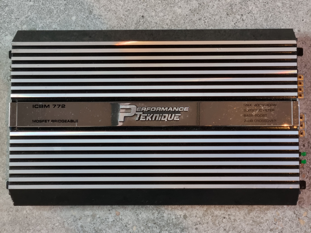 2x125w rms@4ohm Performance Teknique ICBM772 naudotas 2ch stiprintuvas. Pagamintas Korėjoje. Turi Hi-level įėjimus.